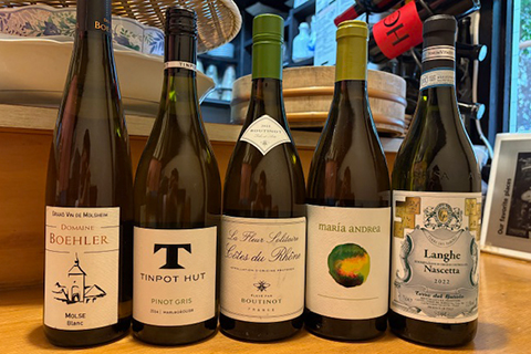 甘めの食前酒もあり、白ワインも多くの銘柄を揃えております。